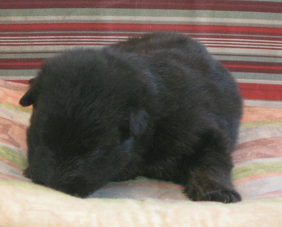 Hündin 2 schwazubraun grünes Band 3 Wochen alt