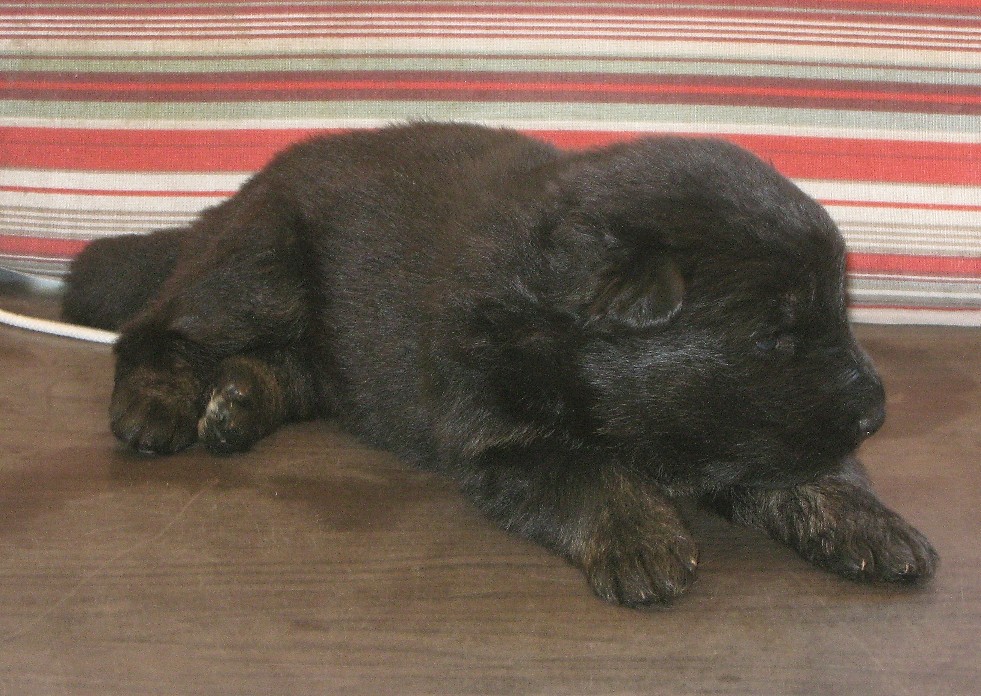 Hündin 2 schwazubraun grünes Band 3 Wochen alt